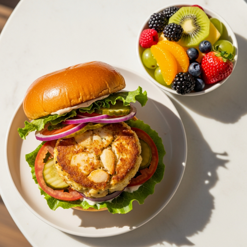 Serve your crab cake sandwich with a side of crispy sweet potato fries or a crisp fennel slaw to balance richness.Garnish with fresh lemon wedges for squeezing, and a sprinkle of parsley adds color and freshness. Pair with a chilled glass of Sauvignon Blanc or a coastal-inspired cocktail for a complete dining experience.